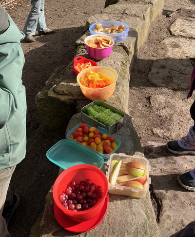 Als Abschluss gab es noch ein Bollerwagen-Buffet auf dem Schulhof, weil Anna und Carl Geburtstag hatten und wir durften noch etwas spielen.