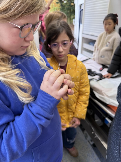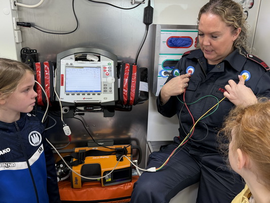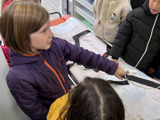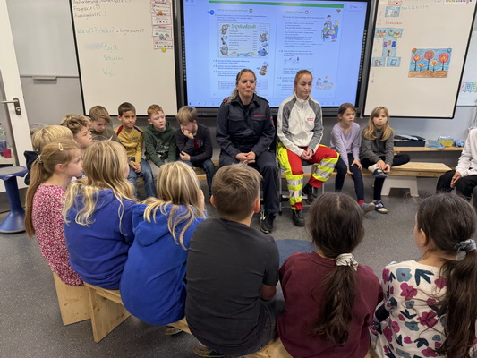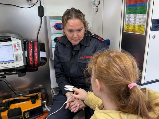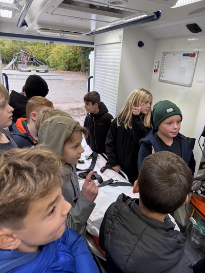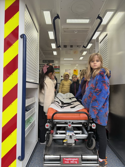 Zum Schluss gab es noch eine großartige Überraschung. Wir bekamen Besuch von der richtigen Feuerwehr und einem echten Krankenwagen. Es war sehr interessant zu hören, was man alles so machen muss, wenn man bei der Feuerwehr arbeitet und einen Rettungswagen fährt. Natürlich durften wir uns den Rettungswagen auch genauer ansehen und einiges ausprobieren. Das war wirklich spannen!