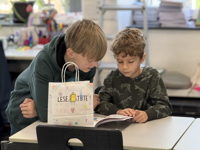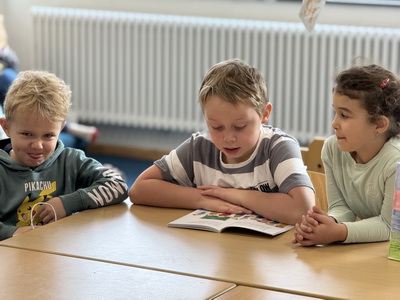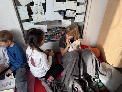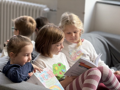 Nachdem wir von unseren Patenkindern abgeholt wurden, haben wir uns gemeinsam einen Platz gesucht und mit ihnen in dem neuen Buch gelesen. Das hat wieder sehr viel Spaß gemacht.