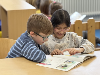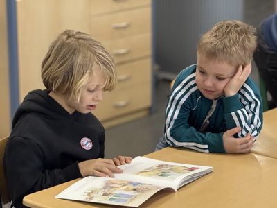 Nachdem wir von unseren Patenkindern abgeholt wurden, haben wir uns gemeinsam einen Platz gesucht und mit ihnen in dem neuen Buch gelesen. Das hat wieder sehr viel Spaß gemacht.