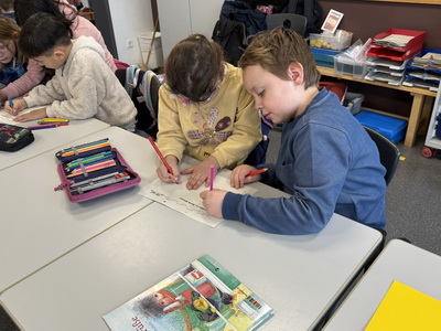 Endlich war es soweit. Wir hatten wieder eine Patenstunde mit der Nilpferdklasse. Die Nilpferde haben uns das Buch „Irma hat so große Füße“ vorgelesen. Das hat uns großen Spaß gemacht und wir konnten oft schmunzeln. Wir haben richtig toll zugehört oder auch schon selbst vorlesen können. Das ist wirklich spitze und hat die Nilpferde sehr beindruckt. Nachdem wir das ganze Buch gelesen hatten, wurde es bunt. Wir haben gemeinsam Irma’s Schuhe ausgemalt und dabei ganz kreative Schuhe gezaubert.