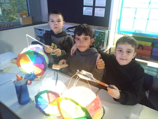 Wir haben zum ersten Mal St. Martin in der Schule gefeiert! Dafür haben wir tolle Bärenlaternen gebastelt. Wir hatten Eis-, Panda- und Braunbären. Herr Barth hat uns auch die Martinsgeschichte vorgelesen. Am Martinstag haben wir uns erst in der Klasse getroffen und uns zusammen einen Stutenkerl geteilt – genauso wie St. Martin es auch mit seinem Mantel gemacht hat. Danach ging es zum Feuer und auf den Zug durch die Straßen. Wir haben viel gesungen und es war ein richtig schöner Abend. Wir freuen uns schon auf das nächste Jahr.