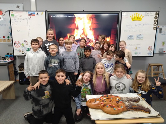 Um ungefähr 17:00 Uhr waren alle in der Klasse. Dann haben wir den großen Stutenkerl angeschnitten. Er war sehr lecker. Während wir den Stutenkerl gegessen haben, haben Fidina und Ben etwas in die Lautsprecher vorgelesen. Danach sind wir zum Lagerfeuer gegangen. Anschließend hat der Martinszug angefangen. Es gab leider kein echtes Pferd, aber ansonsten war der St. Martinszug richtig toll.