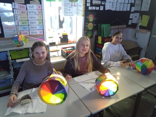 In unserer Klasse gab es in den letzten Wochen viele neue Dinge. So haben wir das “Kind des Tages” eingeführt. Dieses muss zum Beispiel bewerten, ob alle ruhig und schnell genug aufgeräumt haben und darf am Ende des Tages auch an unserem neuen Glücksrad drehen. Das Glücksrad haben wir für unser erstes Klassenspiel eingeführt, was viel Spaß gemacht hat. Außerdem haben wir von Birkans Mutter wunderbare Leseraupen erhalten. Sofern wir fleißig das Lesen üben, wird unsere Raupe immer größer werden. Zuletzt hatten wir noch unseren ersten Kindersprechtag mit Herrn Barth. Der Tag war für alle aufregend und schön zugleich.