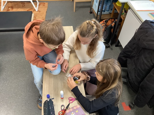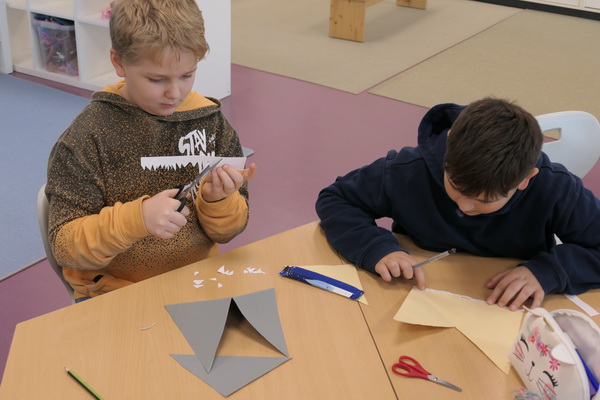 Im Religionsunterricht haben wir über Bischof Nikolaus gesprochen, der vielen armen Menschen geholfen hat. Anschließend sollten wir in Partnerarbeit Gegenstände malen, die zu einem Bischof gehören. Zum Beispiel eine Bischofsmütze oder einen Bischofsstab. Das Besondere dabei war, dass wir sie nicht einfach nur malen sollten, sondern ein Kind dabei die Augen verbunden hatte. Das andere hat dem Kind dann beim Malen geholfen. So haben wir erfahren, wie es sich anfühlt zu helfen und Hilfe zu empfangen.
