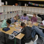 Danach hat der bisher geheime Leseschrank geöffnet. Wir dürfen uns die schönen Bücher zum Beispiel angucken, wenn wir mit dem Satz der Woche fertig sind. Außerdem haben wir mobile Tische bekommen, mit denen wir auch mal woanders arbeiten können. Am Ende der Woche haben wir dann noch die und den ersten Kopfrechenkönig/in gekürt! Jetzt freuen wir uns schon, was wir in den nächsten 100 Schultagen erleben werden.