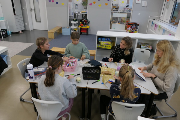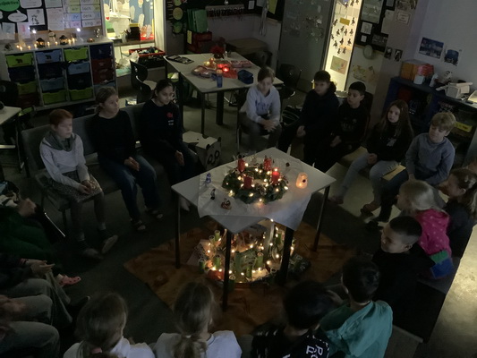 Jeden Morgen freuen wir uns auf unser Adventsritual. Wir malen den Adventskalender aus, hören ein spannendes Hörspiel, machen die Kerzen an und suchen unser Geschenk. Immer ein Kind pro Tag wird ausgelost. Danach raten wir, wer uns beschenkt hat. Außerdem basteln wir aktuell an den Geschenken, aber das ist noch streng geheim. Schade, dass es das letzte Jahr mit unserer schönen Weihnachtszeit ist!