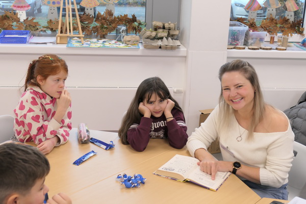In der letzten Zeit haben wir öfters unsere Paten aus der Fischklasse getroffen. Unsere Paten helfen uns, neue Themen gut zu verstehen und sind für uns da. Zusammen machen wir dann die Aufgaben. So macht es richtig Spaß! Wir freuen uns über unsere kleinen Mini-Lehrer.