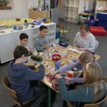 Danach ging die Feier dann richtig los. Wir haben viele Dinge gemacht: Ein ganzes Buffet geknetet, große Murmelbahnen gebaut, Dominosteine mit Looping aneinandergereiht und jede Menge Spiele gespielt. Außerdem waren wir draußen und haben viel von unserem Klassenbuffet gegessen. Die Zeit ging jedoch zu schnell vorbei.