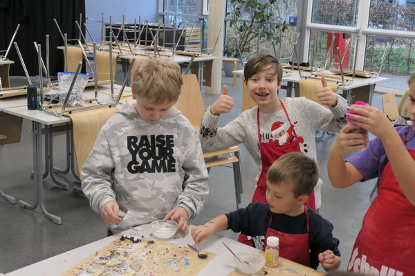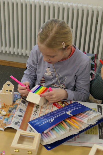 Wir haben dabei Kerzen bemalt, Schatzkisten beklebt, Lesezeichen gebastelt, Schlüsselanhänger angemalt und im Ofen gebacken sowie viele Kriminalrätsel gelöst.