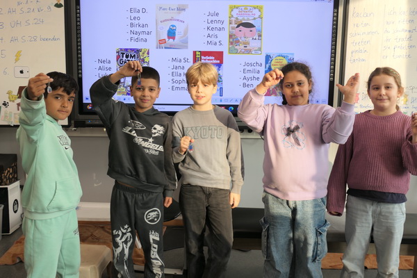 In dieser Woche haben wir viele Sachen neu eingeführt oder zum ersten Mal gemacht. Gleich am Montag haben wir unser Schreibbuch bekommen. Bereits vorher haben wir es richtig schön gestaltet und waren sehr stolz darauf. Nun durften wir endlich darin schreiben und haben dies täglich gemacht! Außerdem haben wir die Bushaltestelle eingeführt. Hier können wir uns mit einem Partner treffen und die Aufgaben vergleichen sowie berichtigen. Wir haben nun auch eine Bücherecke mit allen Büchern der Woche, die wir bisher gelesen haben. Danach können wir das jeweilige Quiz bei Anton machen. Zuletzt waren wir noch zum ersten Mal an den iPads und haben Anton gemacht. Das war richtig super. Wir freuen uns schon auf weitere iPad-Stunden und noch auf viele neue Sachen in unserer Bärenklasse.