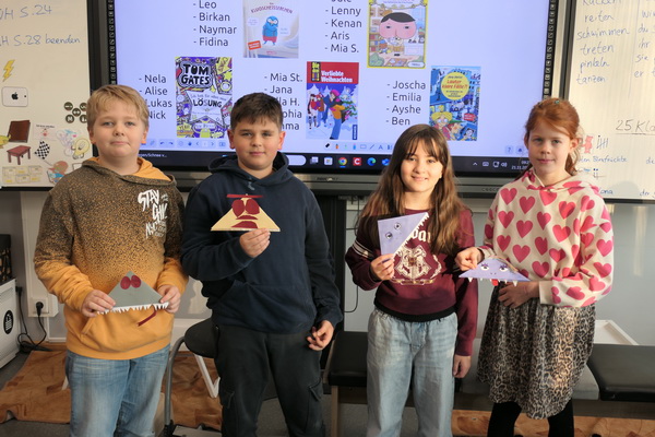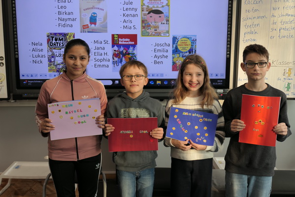 Wir mussten dafür viele Rätsel bearbeiten. Es hat viel Spaß gemacht. Wir haben auch eine Urkunde bekommen, weil wir nun vier Jahre lang die Aufgaben in der Bücherei geschafft haben.