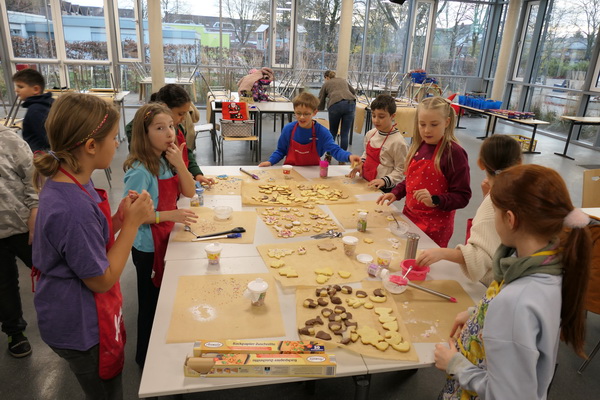 Kurz vor der Adventszeit haben wir zum ersten mal Plätzchen in der Schule gebacken. Dafür kamen viele Eltern, die uns geholfen haben. Wir haben den Teig ausgerollt, die Formen ausgestochen und die Plätzchen dekoriert. Wir freuen uns schon, sie ab nächster Woche zu essen! Parallel haben wir auch noch kleine Tannenbäume gebastelt. Wir sind schon gespannt, was damit passieren wird. Es war ein toller Tag!