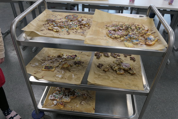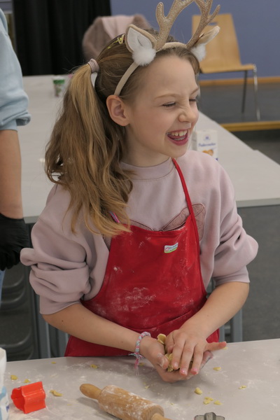 Das Plätzchen backen hat richtig Spaß gemacht. Wie immer haben uns viele Eltern geholfen. Wir hatten viele leckere Kekse. Ein Kind hat auch eine Kackwurst gemacht.