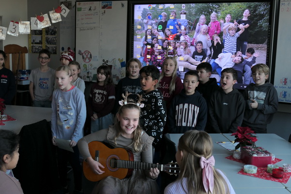Am 4. Dezember war unsere Weihnachtsfeier. Wir haben uns um 15 Uhr in der Klasse getroffen. Emilia hat die Adventskerze angezündet und Emma hat ein Lied auf ihrer Gitarre gespielt.