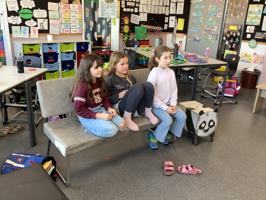 Heute war ein aufregender Tag für uns Kindergartenkinder. Wir sind zum ersten Mal in die Schule gekommen und haben unseren Klassenlehrer Herrn Barth und vieles mehr kennengelernt. Zunächst haben wir eine Aufführung der Igelklasse gesehen. Das war super und wir konnten gut mitmachen. Anschließend sind wir hoch in unsere zukünftige Bärenklasse gegangen. Wir haben uns in einen Sitzkreis gesetzt und erst einmal ein Lied zum Wachwerden gesungen. Anschließend hat Herr Barth uns ein Bilderbuch vorgelesen. In dem Bilderbuch kommen viele Tiere vor, die alle befreundet sind. So ein tolles Team wollen wir in unserer Klasse auch werden! Jeder von uns hat ein Tier aus diesem Buch als Fingerpuppe bekommen. So sehen wir auch, in welches Fach bald unsere Sachen müssen. Danach haben wir noch die Namensschilder angemalt und die tollen Postmappen mit den Briefen von unseren Patenkindern bekommen. Wenn wir ab morgen nun jeden Tag eine Fußspur von Bono, unserem Klassentier, ausmalen, dann werden wir schon eingeschult. Jetzt heißt es also noch 58 Tage warten. Heute war es aber schon einmal richtig schön!