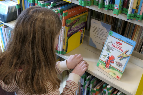Am 08.02. haben wir zum ersten Mal die Stadtbücherei besucht. Wir haben ganz viel gelernt. Wir wissen nun, wie wir Bücher, Spiele oder CDs ausleihen können und für wie lange wir sie ausleihen dürfen. Außerdem haben wir uns angeschaut und ausprobiert, wo man die ausgeliehenen Sachen zurückgeben kann. Danach sollten wir Bücher oder andere Dinge zu verschiedenen Themen suchen und den anderen vorstellen. Anschließend durften wir uns noch in der Bücherei umsehen und uns Bücher durchlesen.
