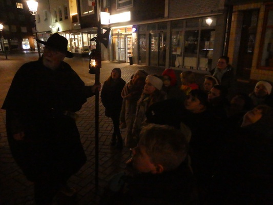 Um ungefähr 17:30 Uhr haben wir uns am Rittertor getroffen. Dann sind wir alle zum Nachtwächter gegangen. Der Nachtwächter hatte einen schwarzen Umhang. Außerdem hatte der Nachtwächter eine alte Waffe, die fanden wir alle sehr cool. Dann sind wir losgegangen. Zuerst sind wir zur Rittergasse gegangen. Als nächstes hat der Nachtwächter etwas über seine Arbeit berichtet. Danach sind wir zum Rathaus gegangen. Wir haben auch noch die Standorte der alten Stadttore gesehen und vieles mehr. Es war ein toller Abend.