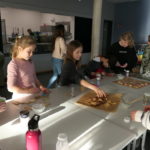 Anfang Dezember haben wir gebacken. Wie immer gab es zwei Gruppen. Zuerst hat die erste Gruppe gebacken und die zweite gebastelt. Die die gebastelt haben, haben Sachen wie z.B. Mehl abgewogen oder Gläser verschönern gemacht.