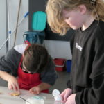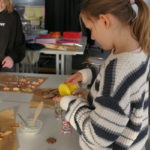 Anfang Dezember haben wir in der Schule Plätzchen gebacken. Die Hälfte unserer Klasse ist dazu jeweils nach unten gegangen. Dort haben vier Elternteile auf uns gewartet, die uns beim Backen geholfen haben. Erst haben wir den Teig ausgerollt, dann die Plätzchen ausgestochen und nachdem sie gebacken worden waren, haben wir diese auch verziert. Zwischendurch haben wir natürlich auch mal vom Teig genascht. Nun riecht es in unserer Klasse richtig schön nach Plätzchen und wir können jeden Tag davon naschen. Während die eine Hälfte der Klasse gebacken hat, ist die andere Hälfte mit Frau Feldkamp im Klassenraum geblieben und hat an Weihnachtsgeschenken gearbeitet. Mehr verraten wir dazu aber nicht, schließlich soll es ja eine Überraschung sein.