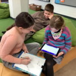 Am Weltvorlesetag hat die Klasse 3a sich in Gruppen aufgeteilt und auf den Tablets das Buch “Sieben Hamster” (auf der Suche nach einem neuen Haus) vorgelesen. Jeder hat von den sieben Hamstern ein bis zwei Hamster gesprochen. Das Buch ging so: Die sieben Hamster hatten ein Zuhause, aber sie wurden größer, bis keiner mehr rein passte. Also brauchten sie ein neues Zuhause. Sie suchten und suchten und haben Tassen, Schuhe und mehr gefunden. Dabei haben sie einen See und vieles mehr überquert.
