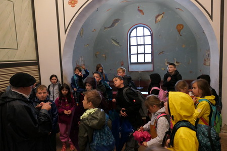 Im Religionsunterricht haben wir über Bischof Nikolaus gesprochen, der vielen armen Menschen geholfen hat. Anschließend sollten wir in Partnerarbeit Gegenstände malen, die zu einem Bischof gehören. Zum Beispiel eine Bischofsmütze oder einen Bischofsstab. Das Besondere dabei war, dass wir sie nicht einfach nur malen sollten, sondern ein Kind dabei die Augen verbunden hatte. Das andere hat dem Kind dann beim Malen geholfen. So haben wir erfahren, wie es sich anfühlt zu helfen und Hilfe zu empfangen.