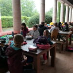 Mitte September kamen deshalb unsere Paten zu uns und zeigten uns, was man in einer Regenpause alles spielen kann. Zuerst erzählten sie uns aber von einem Ausflug, den sie auf den Frankenhof gemacht haben. Für jeden von uns hatten sie auch eine Postkarte über diesen Ausflug bemalt und beschrieben. Anschließend haben wir zusammen gepuzzelt, gebaut, mit Playmobil gespielt, geknetet, uns Geschichten im Kasperletheater ausgedacht, Uno, Domino, Mikado und viele weitere Spiele gespielt. Nun freuen wir uns schon auf weiteren Regen.