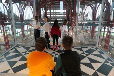 Im Dorf gab es einen Flip Hop-Raum. Dort gab es zum Beispiel Rutschen, Stoffblöcke und Trampoline. Wir haben geklettert, sind von den Elementen heruntergesprungen und haben gespielt. Ich fand besonders das Runterspringen cool. (Deaon)