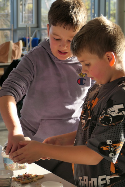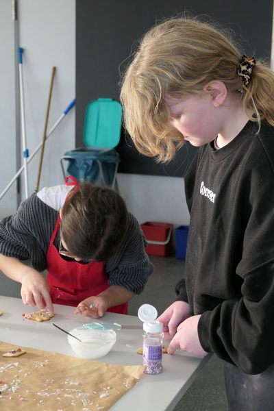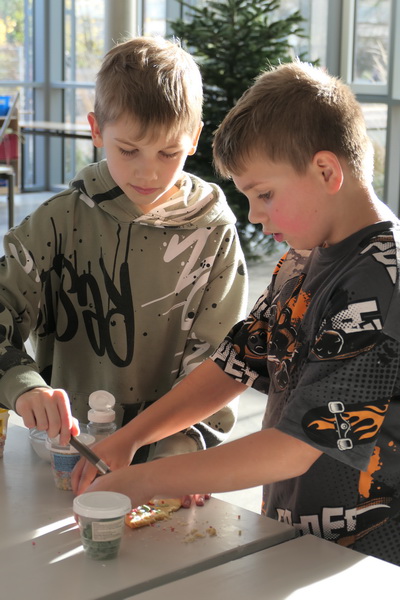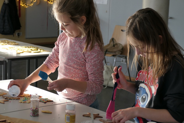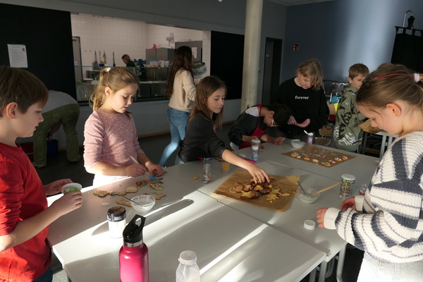 Anfang Dezember haben wir in der Schule Plätzchen gebacken. Die Hälfte unserer Klasse ist dazu jeweils nach unten gegangen. Dort haben vier Elternteile auf uns gewartet, die uns beim Backen geholfen haben. Erst haben wir den Teig ausgerollt, dann die Plätzchen ausgestochen und nachdem sie gebacken worden waren, haben wir diese auch verziert. Zwischendurch haben wir natürlich auch mal vom Teig genascht. Nun riecht es in unserer Klasse richtig schön nach Plätzchen und wir können jeden Tag davon naschen. Während die eine Hälfte der Klasse gebacken hat, ist die andere Hälfte mit Frau Feldkamp im Klassenraum geblieben und hat an Weihnachtsgeschenken gearbeitet. Mehr verraten wir dazu aber nicht, schließlich soll es ja eine Überraschung sein.