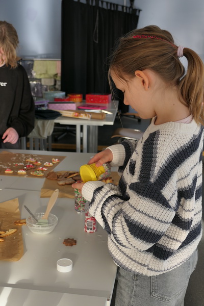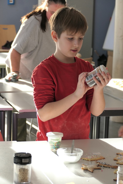 Anfang Dezember haben wir gebacken. Wie immer gab es zwei Gruppen. Zuerst hat die erste Gruppe gebacken und die zweite gebastelt. Die die gebastelt haben, haben Sachen wie z.B. Mehl abgewogen oder Gläser verschönern gemacht.