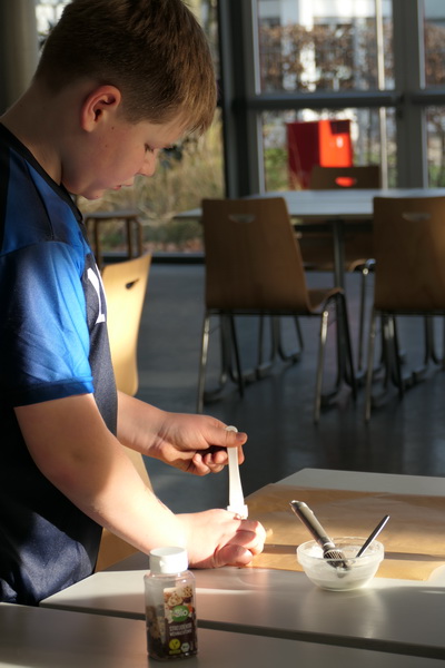 Anschließend zeigte Lotte, wie man mit nur zwei Zutaten einen leckeren und gesunden Milchshake herstellen kann. Natürlich durften auch alle davon probieren. Denn auch gesunde Ernährung ist wichtig, um fit und gesund zu bleiben und gut lernen zu können.