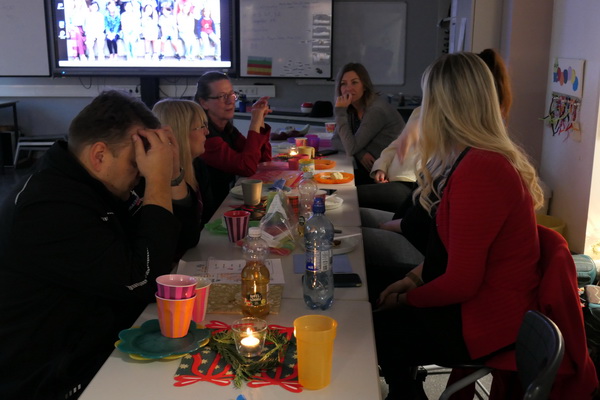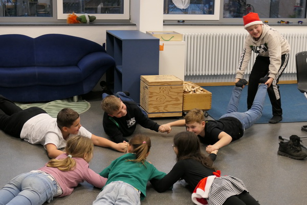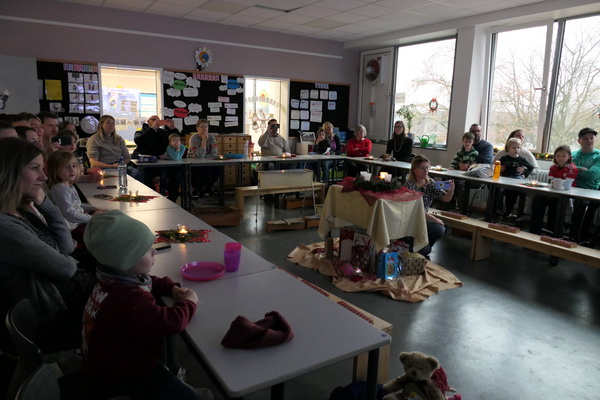 In der letzten Schulwoche vor Weihnachten haben wir mit unseren Eltern eine Weihnachtsfeier in unserer Klasse veranstaltet. Zu Beginn haben wir ein Lied aus dem Musikunterricht vorgetragen. Danach haben wir zusammen gespielt, Kuchen gegessen und etwas getrunken. Besonders viel Spaß hatten wir am Möhrenziehen. Es war ein schöner Nachmittag.