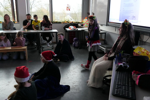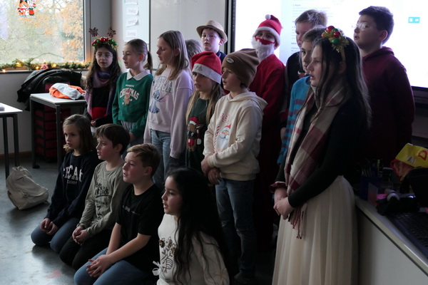 Am 3. Dezember haben wir die letzte Weihnachtsfeier in unserer Klasse mit unseren Eltern und Verwandten gefeiert. Zunächst haben wir alle begrüßt und das Lied “Christmas in the old man’s hat” vorgesungen. Anschließend haben wir das Stück mit Schauspielern, Glockenspielen und Metallophonen präsentiert.