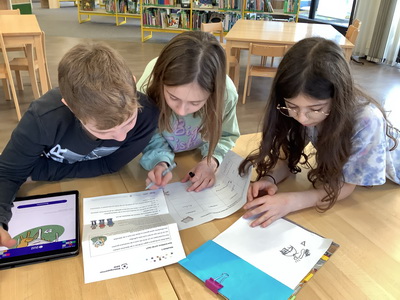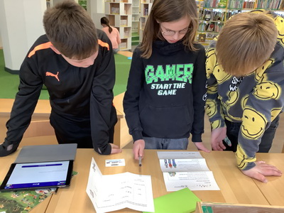 Am 21.3.2025 waren wir in der Bücherei. Wir mussten dort Aufgaben lösen. Dazu waren wir in Teams aufgeteilt. Am Ende haben wir Süßigkeiten bekommen. Danach duften wir noch Bücher, Tonies oder Spiele ausleihen.