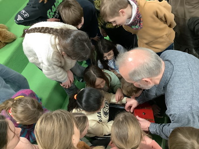 Ende Januar war unser neuer Bürgermeister Simon Panke zu Besuch in der Maulwurf- und Bienenklasse. Wir durften ihm alle möglichen Fragen zu seinem Job stellen, aber auch persönliche Anliegen und Wünsche äußern. Er hat sich alles interessiert angehört und auch Nachfragen zu unseren Sorgen gestellt und überlegt, welche Möglichkeiten er hat, um uns zu helfen. Besonders interessiert hat uns das geplante Neubaugebiet an der Trabrennbahn.