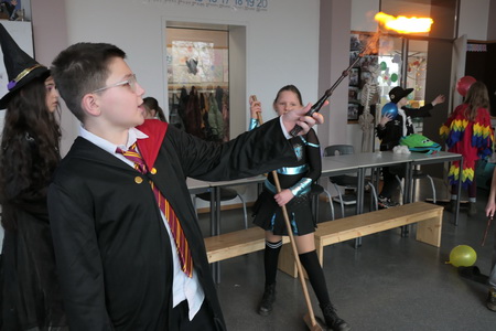 Am 13. Februar haben wir unser letztes gemeinsames Karnevalsfest gefeiert. Zuerst starteten wir wieder mit einer Modenschau, bei der sich jeder präsentierte und erklärte, warum er oder sie und nicht das eigentliche Maulwurfkind zur Schule erschienen war. Anschließend machten wir über unser leckeres Buffet her, bevor wir mit einer Runde Klamottentausch starteten. Nach der Pause gab es wieder reichlich vom Buffet. Dabei haben wir getanzt und danach noch Mord in der Disko gespielt. Zum Abschluss haben wir noch eine Polonaise mit den anderen Klassen unserer Etage gemacht und im Diff-Raum ausgelassen getanzt. Es war mal wieder ein tolles Erlebnis!