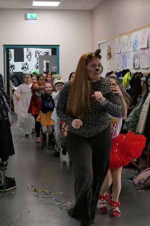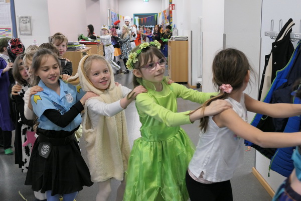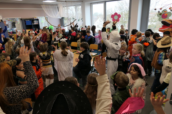 So konnte natürlich kein richtiger Unterricht stattfinden. Deshalb wurde in den Klassen getanzt und allerlei tolle Spiele gespielt: Reise nach Jerusalem, Stopptanz, Zeitungstanz und viele mehr. Auch hat jeder etwas zu Essen mitgebracht, so dass in allen Klassen ein tolles Buffet entstand.
