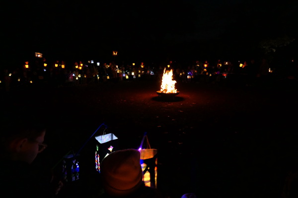 Anschließend ging es zum großen Feuer, wo gemeinsam ein Lied gesungen wurde, bevor der Zug endlich gestartet ist. Wieder konnten wir durch schön beleuchtete Straßen im Averbruch laufen. Dabei wurde viel gesungen und gelacht. Im Anschluss gab es noch etwas zu essen, leckere Nüsse und Glühwein auf dem Schulhof. Wieder kamen auch viele Ehemalige vorbei, um uns zu besuchen.